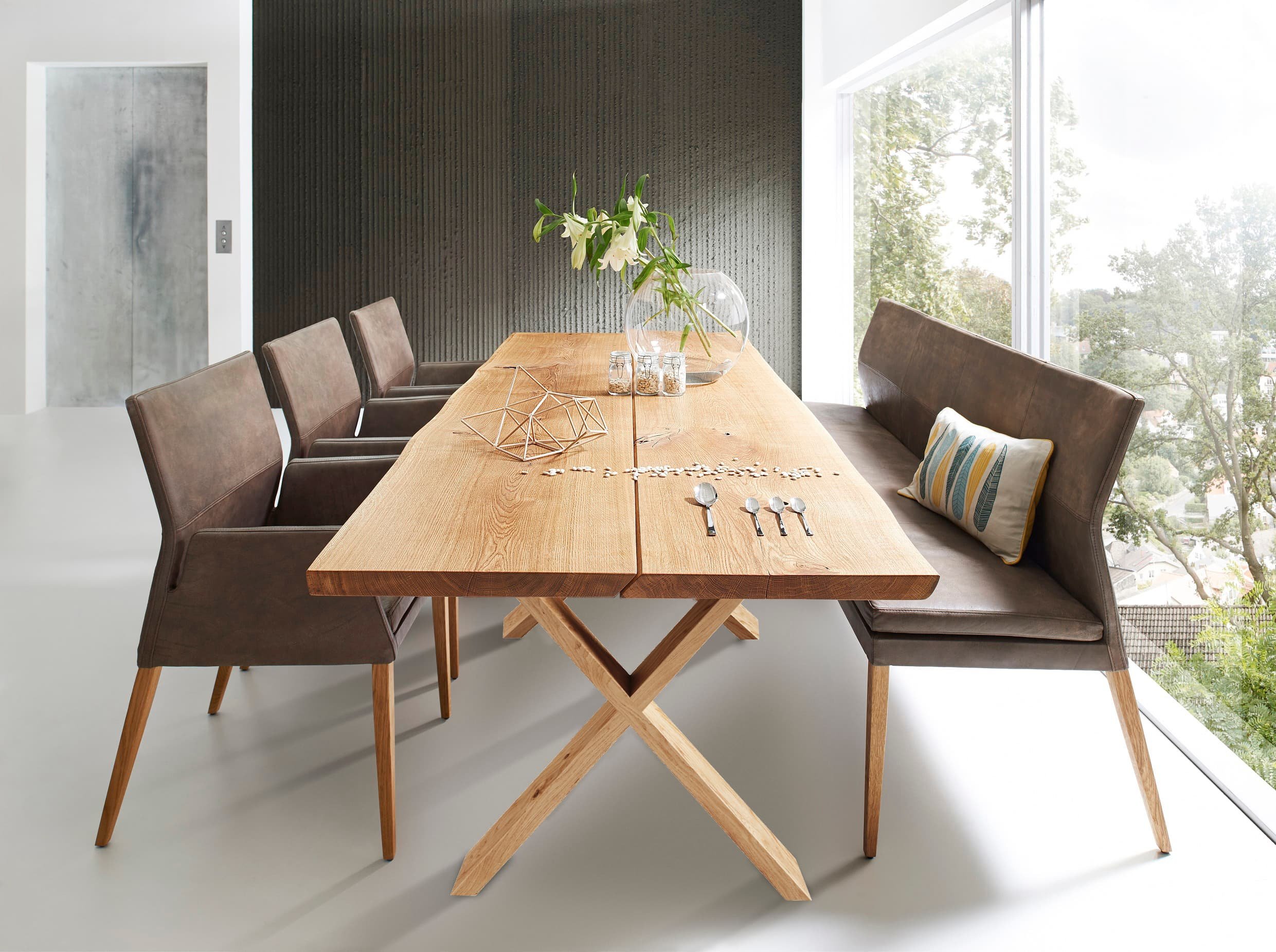 Our bespoke dining tables are made to order in either solid oak or walnut. You choose your size, colour, edge profile, leg style and whether you would like extension leaves or not. All of our tables are crafted for durability, character and made for a perfect fit for any space. Please see below some examples of what we can create and check out our tables brochure for all of the options available.